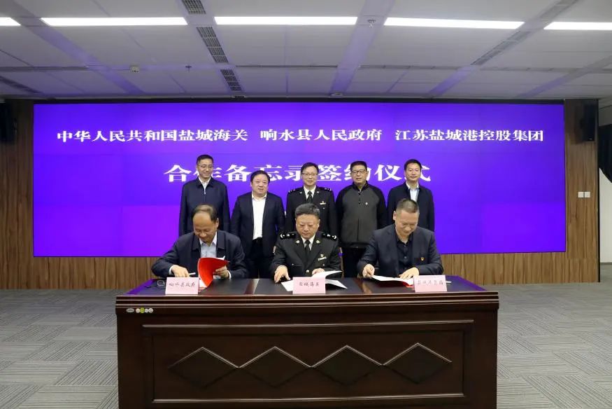 10月29日,盐城港口岸响水港区和射阳港区三方合作备忘录签约仪式在集团举行。盐城海关党委书记、关长胡正良,集团党委书记、董事长、总经理周正雄,市口岸办副主任、市商务局党委委员陈国亮,射阳县委副书记、代县长王宁,响水县委副书记、代县长陆文忠出席活动并鉴签。盐城海关党委委员、副关长李健,市口岸办副主任、市商务局党委委员、二级调研员韩玉军,射阳县委常委、常务副县长凌晓东,响水县副县长张炜生,集团党委委员、纪委书记周旭东等参加。集团党委委员、董事、副总经理陈正华代表集团进行签约。