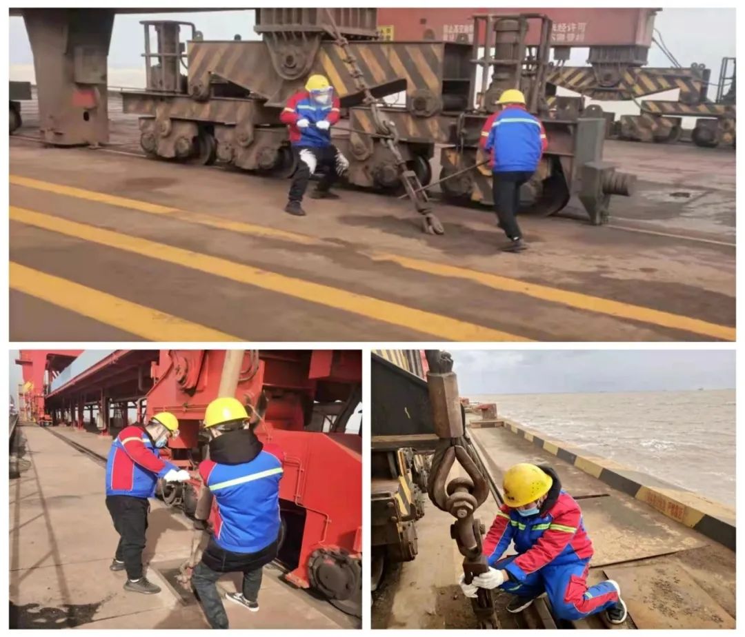 不畏严寒,斗风战雪。各分(子)公司和部门结合生产作业特点,针对性地布置了应对极端天气的工作措施。后勤人员给水管阀门和水表包扎棉布、填充棉衣,避免管道冻裂;机修人员实时检测码头风力,对大型港机设备进行加固锚定;机务人员根据气温变化,提前储备了抗凝剂、启动液、-10号和-20号柴油,同时重点开展各类机械的燃油料、防冻液、油水管路防冻检查工作,为设备在冰冻天气下安全运转提供坚实屏障。