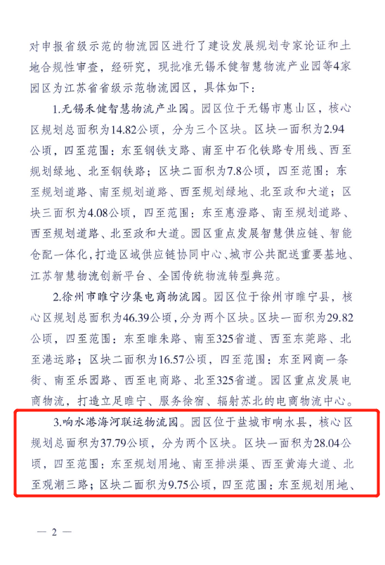 喜讯!近日,响水港海河联运物流园被省发改委批准为江苏省省级示范物流园区。