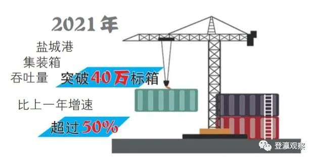 2021年,尽管受疫情影响,但盐城港集装箱吞吐量突破40万标箱,比上一年增速超过50%,越来越多的货物通过盐城港进出。