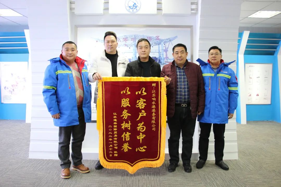 2月17日,江苏通梁国际贸易有限公司给响水港区送来一面锦旗,上书“以客户为中心,以服务树信誉”,这面锦旗见证着双方合作从无到有、从小变大的历程。