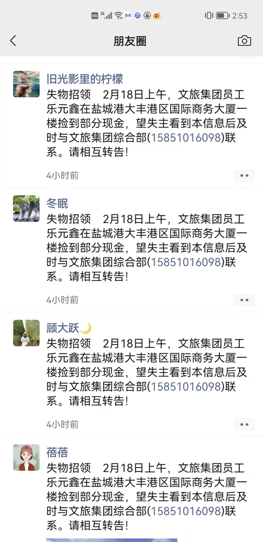 “看到微信朋友圈满屏的失物招领信息,我才发现原来是我自己的钱丢了,真是太感谢了。”这是近日,一位在大丰港区成功通过微信朋友圈找回丢失现金的失主发出的感慨。
