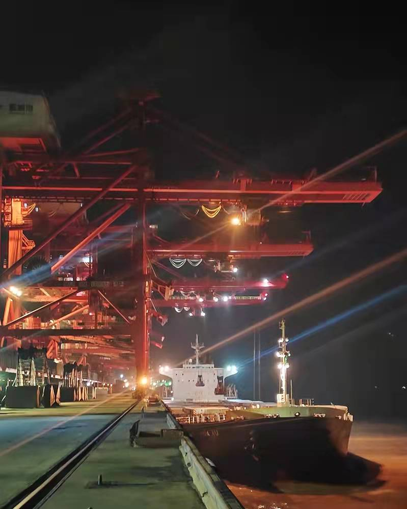 一直以来,港口公司始终坚持在泊位、流程、接卸、场地、服务五个方面,按照“最快速靠泊、最优先组织、最高效接卸、最稳妥安排、最满意服务”的“五最”思路进行生产作业,最大力度抓好精细化生产调度组织,通过一船一策、制定单船作业方案和效率目标,切实从全方位提升安全作业效率和效能。