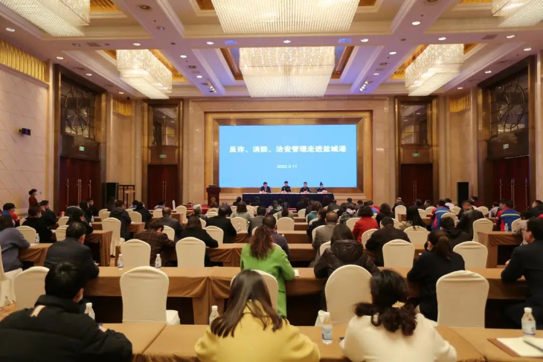 活动邀请大丰区公安局相关负责同志,分别对治安管理、消防、反诈知识进行详细的讲解,用通俗易懂的话语、各种真实案例,阐述了治安管理、消防、反诈的重要性。
