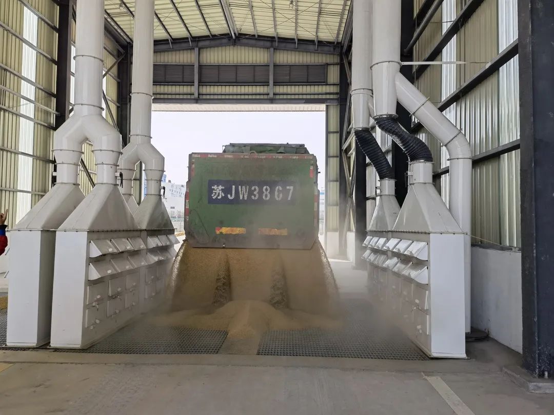 盐城港港口公司粮储公司投效使用的机械化平方仓在作业模式上进行大力改革,创新性使用双梨式单托辊带式输送机,利用其高度集中化、自动化的功能优势,实现粮食远距离、不间断、大批量输送进仓,进一步提高了粮食进仓速度和卸粮质效,同时输送线全程采用高效脉动除尘装置及抑尘料斗,为节能增效、除尘环保提供有力保障,有效实现了绿色仓储升级转型。