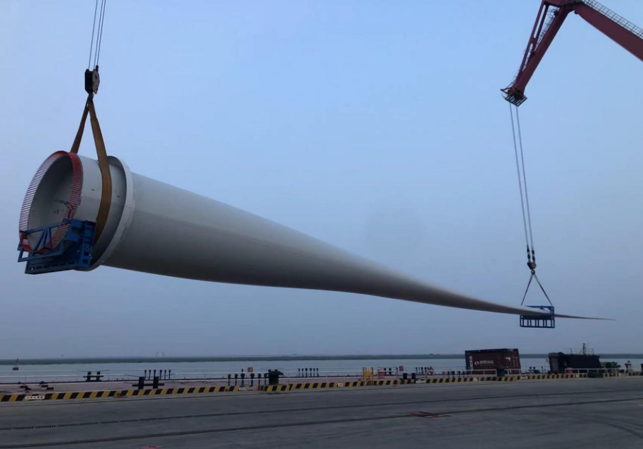 6月16日,射阳港区顺利完成了首船107米风电叶片的装卸作业工作,这是中国近海岸风力发电场第一套107米发电机组叶片,也是射阳港区有史以来装卸作业的最长风电叶片,再次刷新了射阳港区风电叶片吊装纪录,标志着射阳港区成功跻身百米以上级风电叶片发运港口行列。这次成功装卸,创造了盐城港装卸风电叶片长度新纪录,向盐城港集团成立两周年献上了一份厚礼。