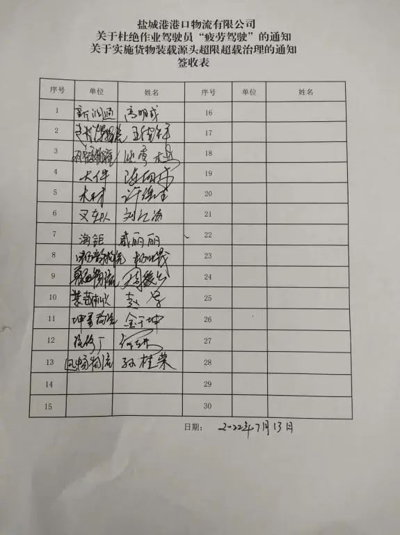 为全面做好港区作业车辆超限超载治理工作,切实加大货运源头治理力度,保障道路交通运输安全。近期,盐城港港口公司物流公司认真组织职工学习贯彻国务院安委会安全生产“十五条”硬措施和盐城港集团“三位一体”工作部署要求,坚持“人民至上,生命至上”的理念,严格落实《关于实施货物装载源头超限超载的通知》、《关于杜绝作业驾驶员“疲劳驾驶”的通知》等文件要求,全力开展安全运输“三步走”工作。