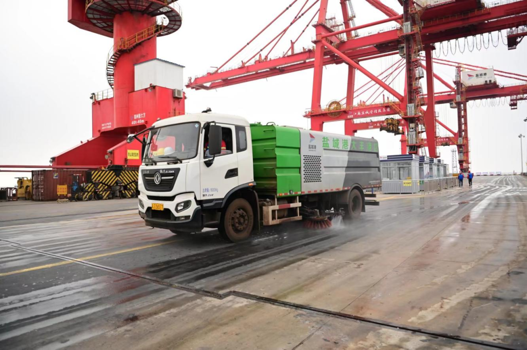 我的“座驾”是洗扫车。港区内的洁净工作可少不了我们,在清扫作业中,我与洗扫车密切配合,洗扫、洒水、喷淋、吸尘等功能都不在话下,每圈车轮都印证了执着的坚守。我们是守护碧海蓝天的卫士,确保属地范围内24小时处于迎宾状态,打造港区靓丽风景线。