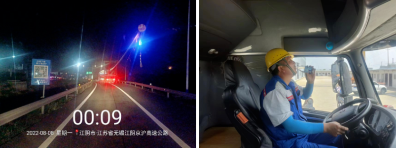 面对近期连续高温天气,车队管理人员通过合理安排装卸、运输时间,避开高温风险,利用早晨装车、晚上发车、后半夜到达目的地的方式进行作业。作业人员抵达江阴后,为保证所运设备安全,车队管理人员全部在车内休息。