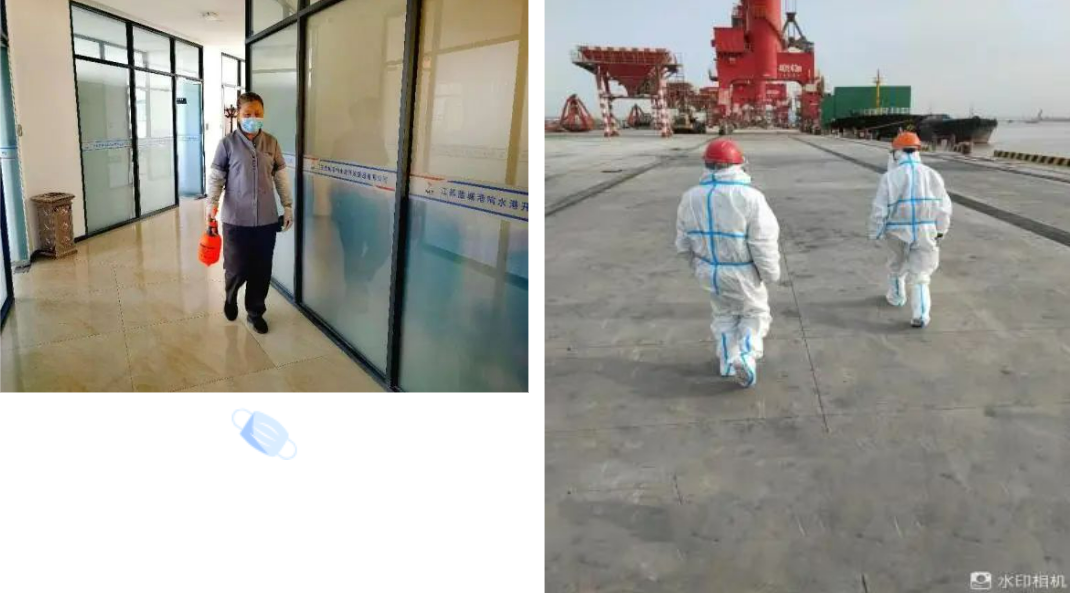 健康为本,预防为主。响水港区结合常态化疫情防控工作要求,白衣作袍、蓝罩为甲,定时、定次、定点对作业区、办公点、通勤车进行消杀,在密封作业区放置口罩并要求所有人员全程佩戴,守好预防流感病毒传播的第一道屏障。