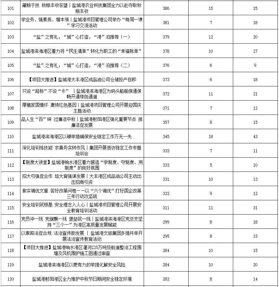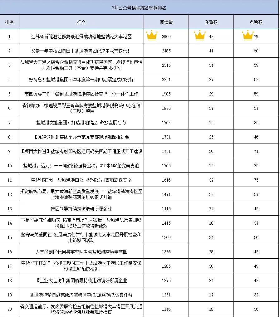 9月,新闻宣传战线紧扣集团中心工作,“五大活动”宣传扎实推进,如火如荼;聚焦中秋等热点,用心策划,创新呈现......全方位讲好盐城港故事,传播盐城港声音。