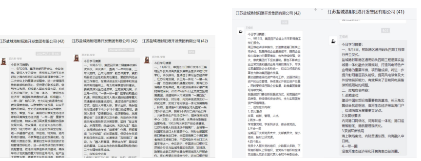 思想的统一引领行动的统一。近阶段,重点围绕应知应会常识,每天早上九点,港区综合部专人将摘编好的应知应会知识点发布到工作群,供所有员工学习。内容涵盖领导重要讲话、时政热点、企业文化、岗位职责等,员工结合自身工作安排进行学习。员工们纷纷表示,比起自己平时杂乱学,重点知识点的汇总学习犹如“启明星”,轻松从“要我学”转变为“我要学”,在学习中不断反省自身不足,查漏补缺立行立改,为高效率高标准完成工作夯实思想根基。