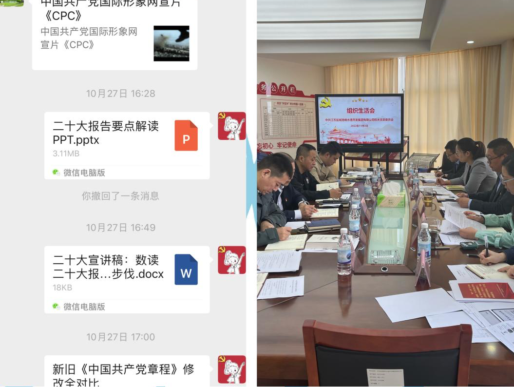 响水港区认真挑选党的二十大精神相关的思维导图、金句、文章等,在港区干部职工工作群内进行共享共学,同时通过“学习强国”、人民日报、集团公众号等载体,持续深入学习党的二十大精神相关社论和解读。响水港区党组织开展总支委员会、主题党日、组织生活会集中学习党的二十大精神,总支书记带头学,为党员和干部职工讲解二十大知识要点和热点话题,提高党员学习效率。同时通过召开组织生活会围绕学习党的二十大精神进行交流分享,党员结合工作实际谈认识、讲体会、话感悟,在相互交流、碰撞借鉴中深化思想认识,剖析自身不足,掀起学习热潮。