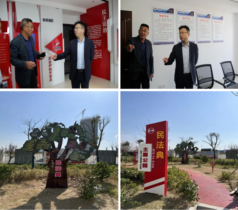 近期,射阳县司法局局长张昊一行来到盐城港射阳港区,对港区法治文化阵地建设情况进行调研指导。调研组对射阳港区利用法治文化阵地普法、学法、守法、用法的做法表示了充分肯定,并就港区今后法治文化阵地建设的方向、形式、内容等方面提出意见和建议,重点对港区法治码头建设方案提出了建设性指导意见。
