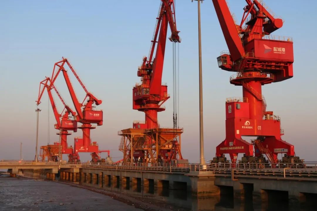 船来船去,上货吊装,作业有序,是码头泊位上的繁忙景象。2022年,射阳港区提前一个月超额完成生产经营目标任务。