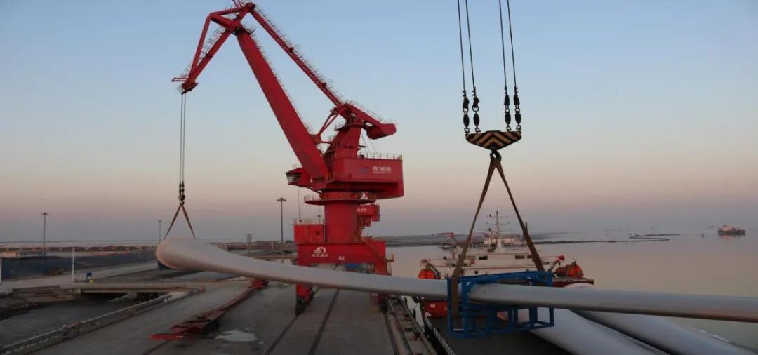 看,码头上高大的“钢铁士兵”一字排列,严阵以待,传承延伸着港口奋进的力量。