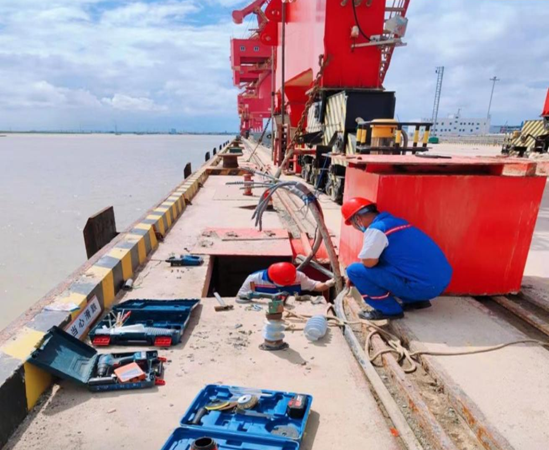 码头设备使用下沉式接电箱,海水湿气大腐蚀性极强,设备组定期对电箱高压进线终端进行检查,对有问题的立即整改。保障码头正常作业,为完成全年目标任务奠定坚实基础。
