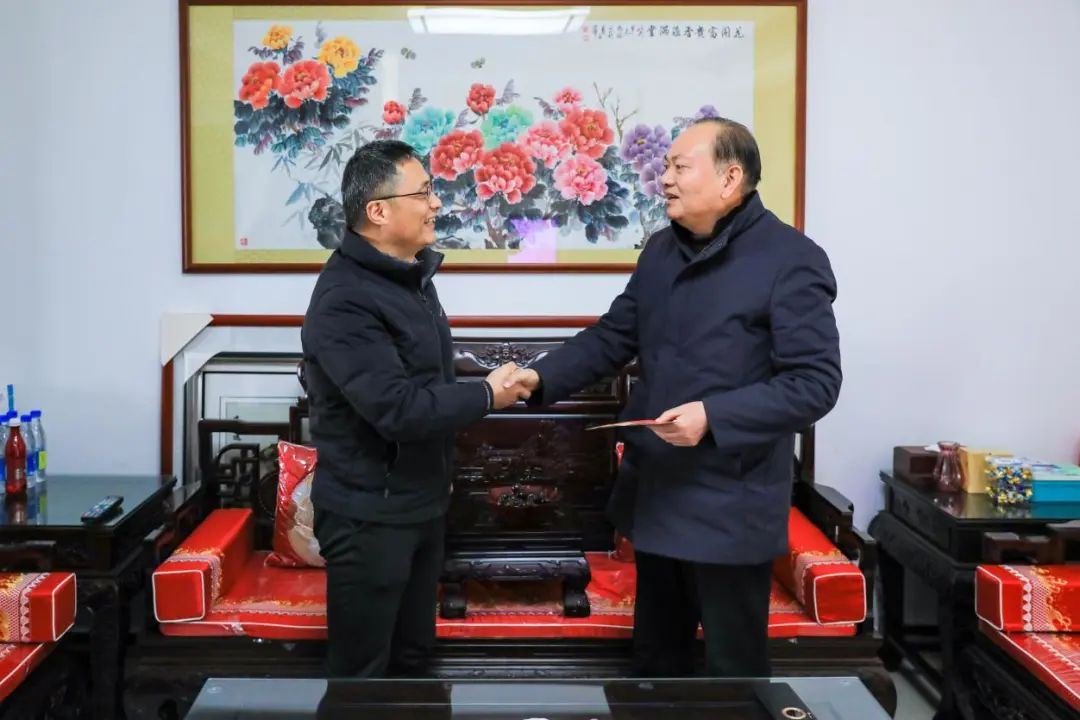 陆帅一行前往大丰区看望退休老干部姜福才,热情地与老干部促膝谈心,亲切地询问他的家庭、生活、健康状况,并送上了新年祝福。陆帅向老干部介绍了盐城港一年来的工作情况和取得的成绩,对老干部们多年来为港口事业的发展作出的贡献表示感谢,并叮嘱他多保重身体,希望老干部们继续关心、支持集团工作,为盐城港高质量融合发展建言献策。