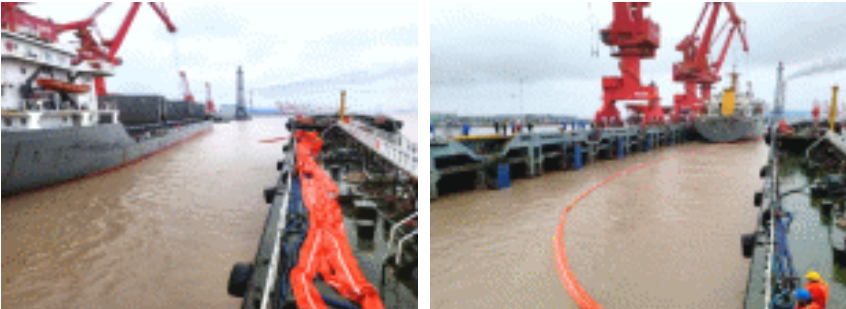 近日,江苏响水港港务公司在4#泊位开展船舶溢油应急处置联合演练。