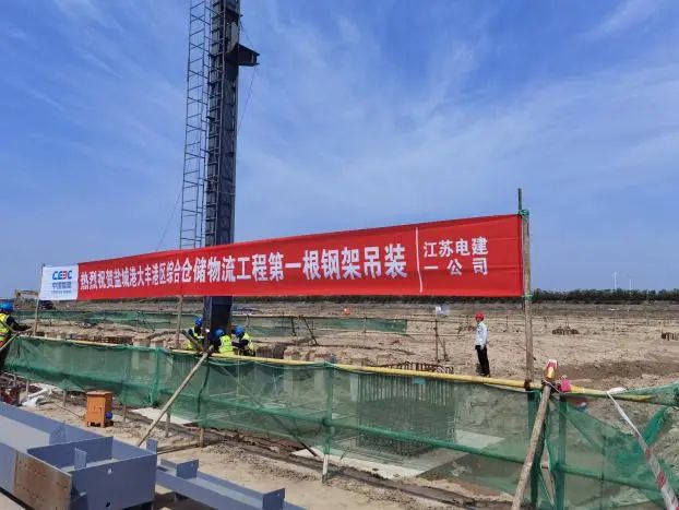 在机械及司号声中,第一根预制钢架被徐徐吊起,稳稳地安装在承台基础上,由项目咨询公司代管的大丰港综合仓储物流项目钢结构工程首吊成功完成,标志着该项目正式进入安装施工阶段,开启建设新篇章。