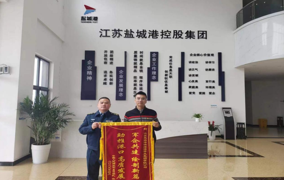 军企共建奏强音丨滨海县临淮驻地某部为盐城港滨海港区送来锦旗