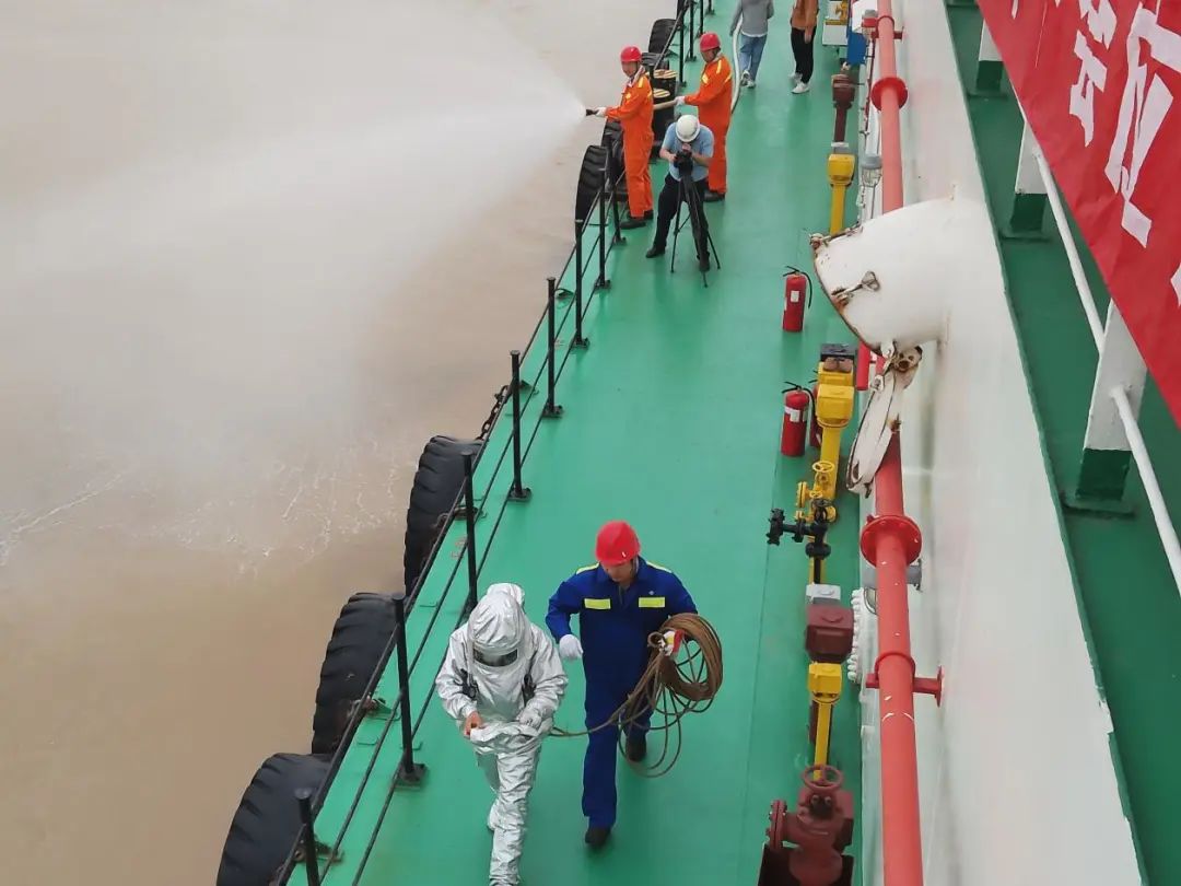 此次演练由灌河海事执法大队进行现场指导,并邀请了灌河航道、江苏科兴、天航局、一航局、广航局、江苏筑港等相关单位进行现场观摩。