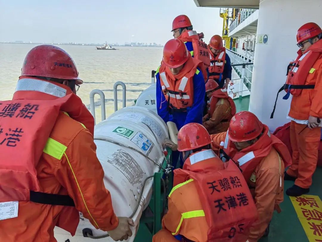 根据盐城港集团2023年“安全生产月”活动要求,近日,项目咨询公司盐北区域分公司,在中交天津疏浚工程公司“天骥号”绞吸船上开展船岸联合消防弃船综合应急演练。