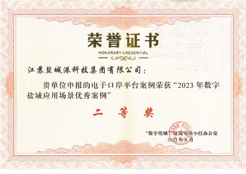 近日,“数字盐城”建设领导小组办公室公布了2023年“数字盐城”应用场景优秀案例名单。科技集团申报的盐城电子口岸平台案例获评二等奖,基于数字孪生技术的可视化协同智能调度系统获优秀奖。