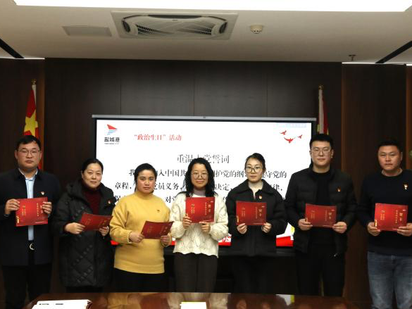 一个承诺,一颗初心,一生信仰,我心向党,初心永挚。射阳港区全体党员干部将永葆共产党员的政治本色,坚定信仰铸忠诚,立足岗位创新功。在新的一年里。射阳港区党总支也将用活“政治生日”形式,与支部书记上党课、实境教育相结合,让全体干部职工感受到集团党委、港区党组织的温暖关怀。