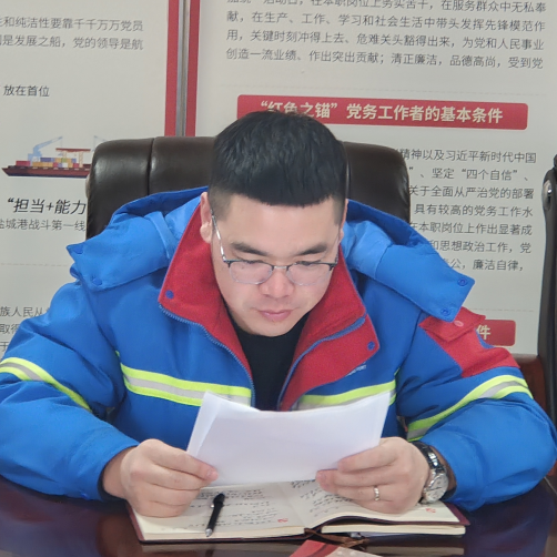 入党十余年,转眼我也到了退休的年纪,很荣幸见证了射阳港区从起步到融入盐城港集团高质量发展的整个历程。乘着建设“五新示范港”的东风,我们这样的“老头子”也能学习到线上模块、小程序的搭建和使用流程,我将持续发以党员身份严格要求自己,守好最后一班岗。