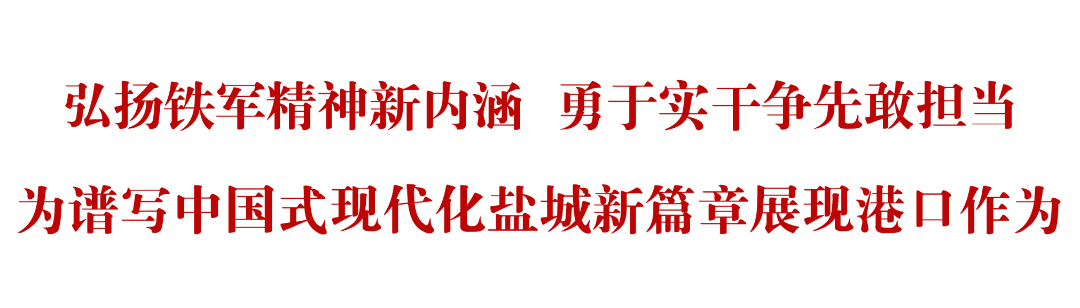 要更加紧密地团结在以习近平同志为核心的党中央周围,在市委的坚强领导下,弘扬不怕困难、不畏艰险,勇于斗争、敢于胜利的铁军精神新内涵,以实干争先谱写发展答卷,奋力在中国式现代化盐城新实践中展现港口作为。
