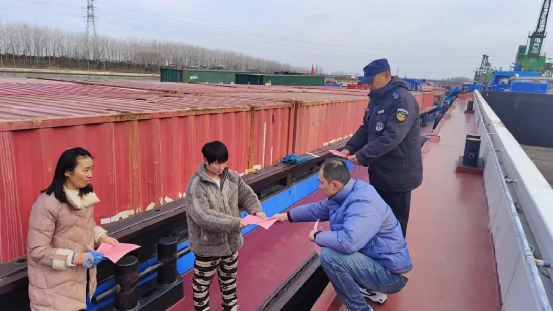 节日期间,水上服务区全面强化值班值守,确保船舶规范停泊,对来往船舶发放《安全管理告知书》宣传单100余份,不断加强水上“春运”安全监管责任落实。