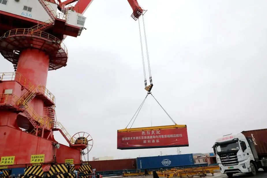 新年开工伊始,内河航线“上新”。2月24日,伴随着一声汽笛长鸣,盐城港内河集装箱船舶“大港集002”轮满载着56TEU的卡纸和小麦,从大丰港区内河集装箱码头缓缓驶离,标志着盐城港大丰港区至南通通海码头内河集装箱精品航线正式开通,切实为盐城港集团抢抓长三角一体化战略机遇、完善航线布局提供了有力支撑。至此,盐城港航线总数增至45条。