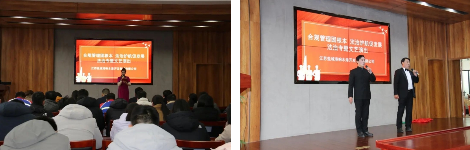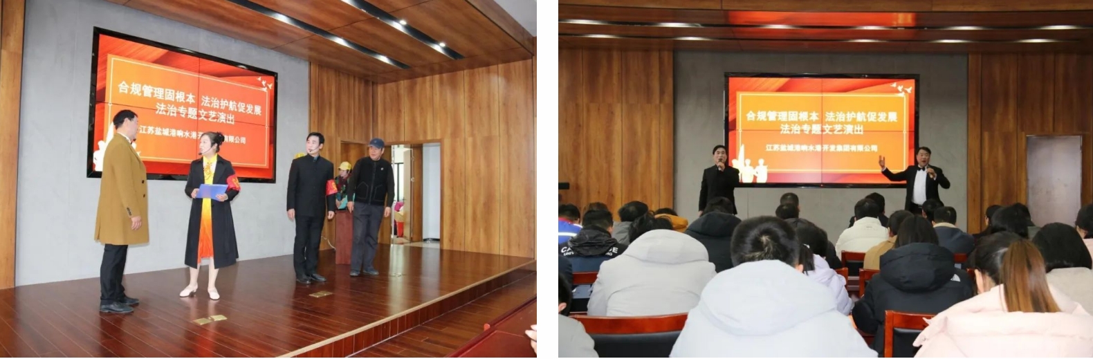 为全面落实“合规管理年”工作部署,进一步增强全体干部职工的合规意识、法治意识、规矩意识,近日,响水港区邀请响水县总工会、响水县曲艺协会,联合开展“凝心铸魂跟党走 团结奋斗新征程”系列文艺汇演——法治主题专场。