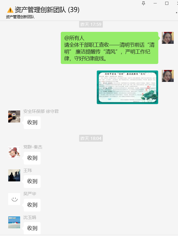 为进一步深化全面从严治党和党风廉政建设工作,深入推进廉政教育,教育引导全体干部职工严守纪律红线、筑牢廉洁底线,资产公司党总支坚持“教育在先、警示在先、预防在先”原则,多措并举、系统施策,打出“教育促廉、承诺悟廉、安全践廉”等组合拳,坚定不移纠治“四风”,推动节日风气持续向好。