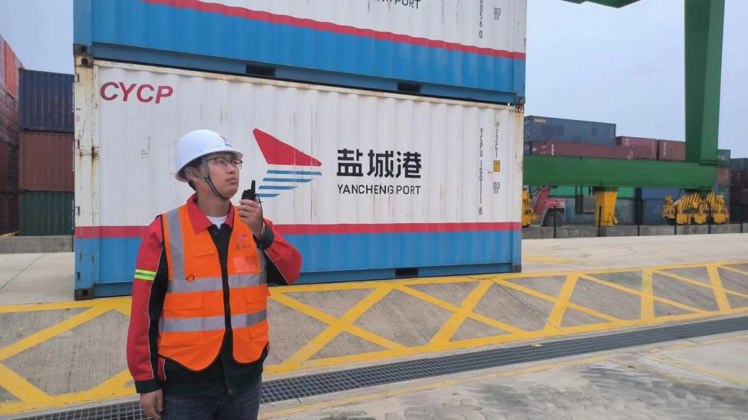 他是亭湖港集装箱调度员宋权,一箱箱货物,琳琅满目,面对节假日高强度的生产任务,他用“不掉链”的服务确保港区物流的有序运转。