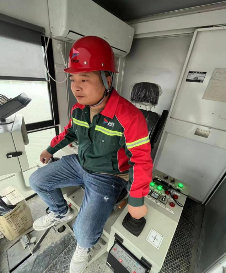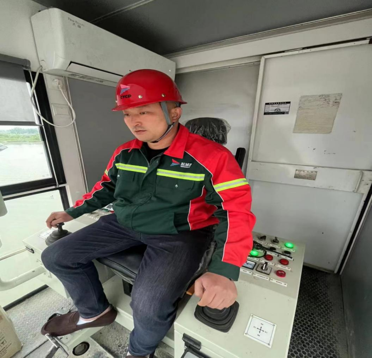 他是门机师傅陈鑫,假期的亭湖港作业繁忙,他不辞辛劳,甘于寂寞,坚守岗位,用精湛的操作技能确保每一个装卸环节的顺利进行。