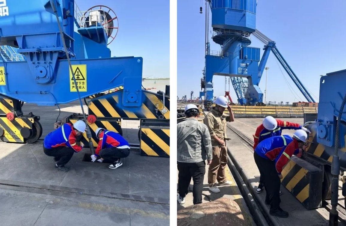 强化预防性维护。组织队伍对港区设施设备,尤其是门机、桅杆吊等大型机械进行全面排查,细致检查了防风索、锚定、夹轨器及防滑靴等关键部件,确保设备正常运转。在台风天气前,加大检查、检修力度,采取防风加固措施,提高设备抗风险和抗灾能力。
