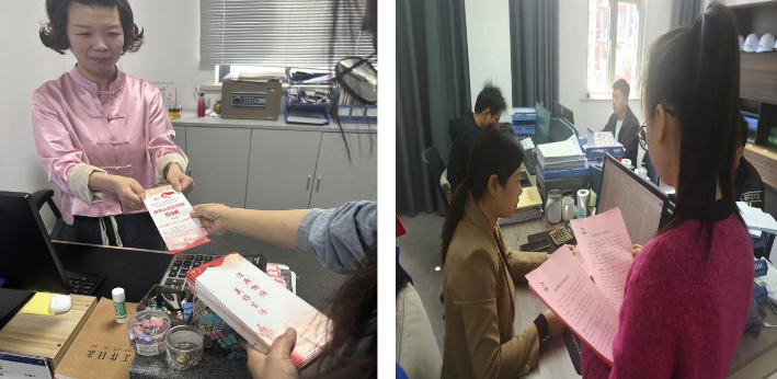 制作发放民法典知识内容宣传单及民法典普法宣传册,组织全体人员利用晨会时间加强学习,并在跨境电商园区向来往园区客人发放宣传单,以此增强大家学法、懂法、用法意识,合力营造良好法治氛围。