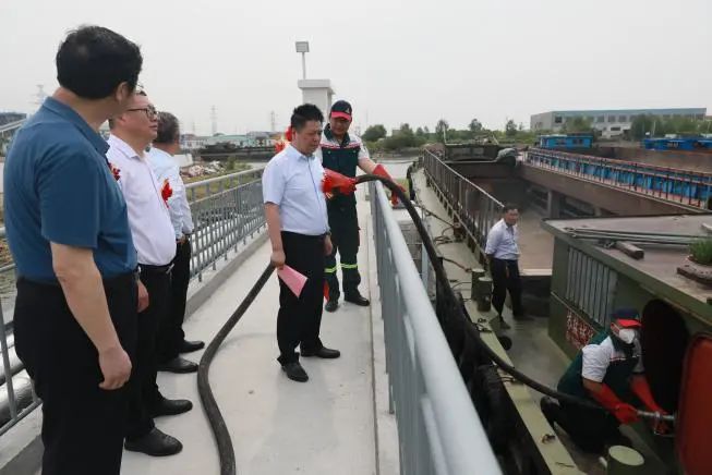 2024年6月16日上午,随着一声船笛响起,全市首家内河港水上加油站—建湖港水上服务区加油站宣布开业运营,陆港集团相关负责人等参加了开业仪式并在通过风险提示、静电消除后进行了现场加油操作观摩,此次首单业务为苏盐城货092668等船舶提供了近500升柴油。