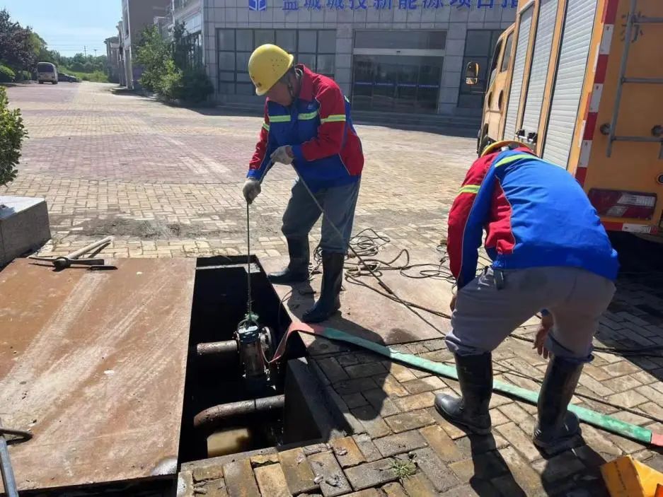 (表井内有水,为清楚抄表,抄表员正在抽水中)