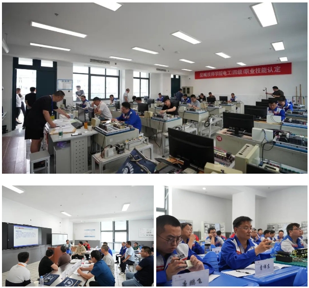 本次培训目的为取得双证(电工中级证和电工上岗证),解决各公司实际用工问题。针对培训人员需求,电工中级证课程由盐城技师学院授课,课程内容含安全用电、电工新技术、继电器控制线路安装与调试等理论与实操课程;电工上岗证课程由海基元职业培训学校授课,课程内容含论题库讲解、实操公共科目讲解与演练、实操科目二部分讲解与演练等理论与实操课程,内容丰富,针对性强。