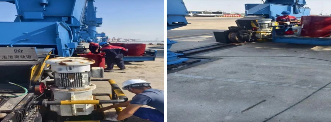 坐标定位:响水港区龙门吊轨道减速箱维护现场