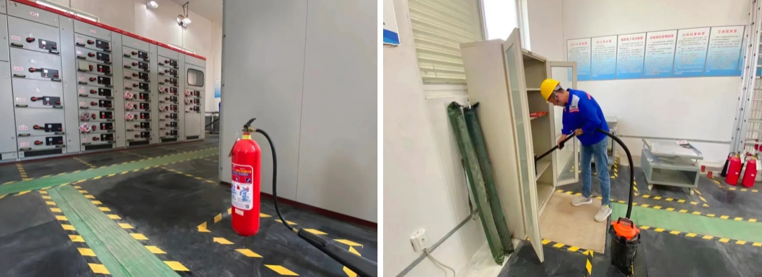 灌江港务分公司配电房现有绝缘垫即将到达更换期限,设备技术组摒弃传统布局设置,结合码头实际,运用不同颜色进行区域划分,重新规划、摆放,清晰界定各功能区域,同时特别为配电房开辟了“安全通道”,以保障紧急情况下的快速疏散与救援。此外,设备技术组使用警示胶带,明确划分禁止触碰区与应急器械区,有效地提高了工作场所的安全性,减少因误操作或不了解环境布局而导致的潜在风险。