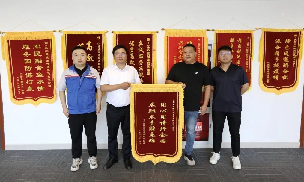 8月30日,江苏欧领物流有限公司代表送来了写有“用心用情纾企困,尽职尽责解急难”字样的锦旗,向盐城港航运集团积极为其解决用箱难题表示衷心感谢,对盐城港航运集团优质、高效、贴心的物流服务给予高度赞扬。