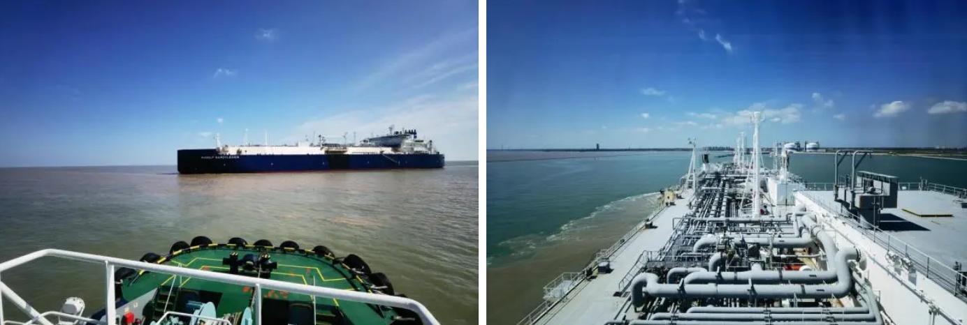 为保障该轮安全进港,盐城港引航站主要负责人带队,提前全面勘察码头泊位、航道水流及码头附近最新水深情况,LNG码头航道转向区域水域受限,航道宽度仅为320米且转向角度较大,浅点较多,通航环境复杂,船舶操纵难度大,风险高,易发生事故险情。