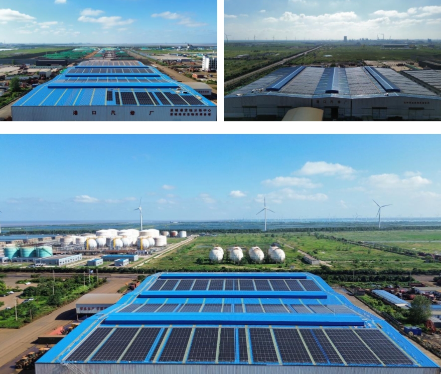 大丰港区汽修仓库1.2MW屋面分布式光伏建设完成