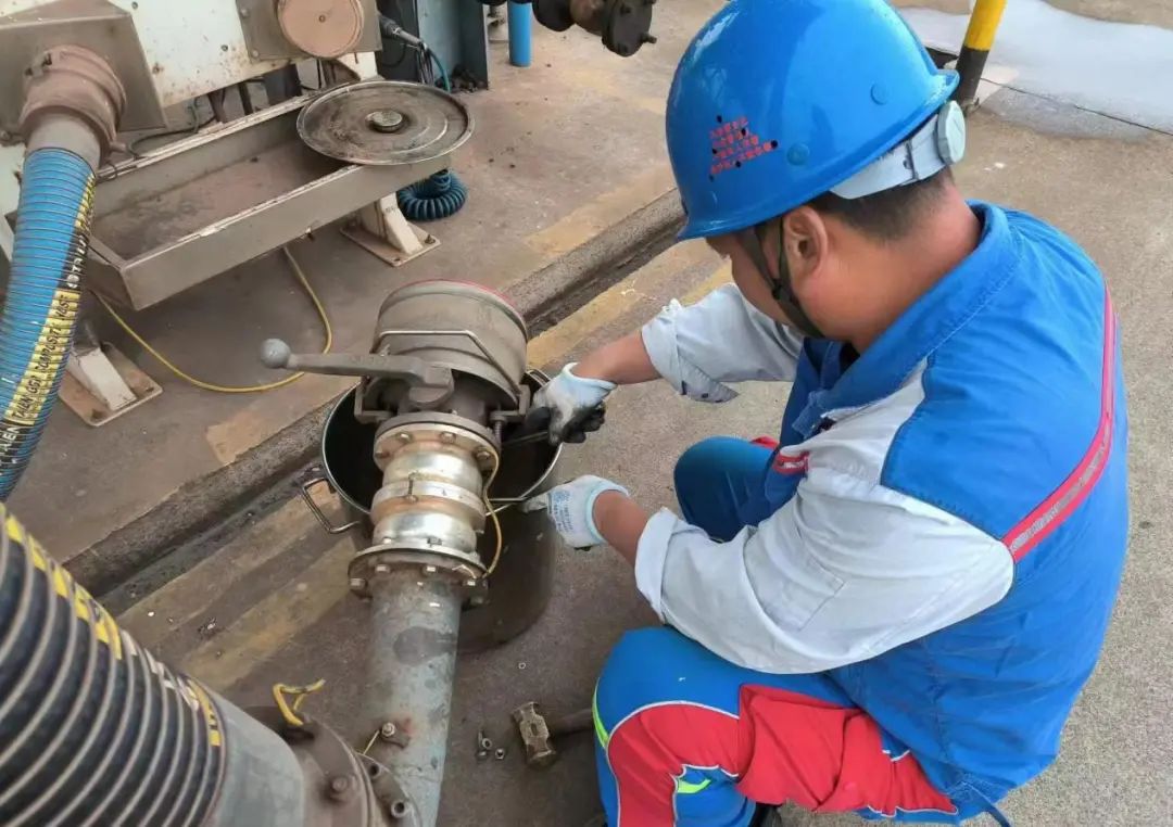 当班人员陈纪云立即向值班领导汇报了情况,一场与时间赛跑的检修行动随之展开。值班领导迅速决策,通知组长周汉华紧急召集全体机电班组成员。时间紧迫,周汉华没有丝毫犹豫,立即通过电话通知每位成员,在1小时内,港储石化的微光创新班组已经集结完毕。他们迅速分工合作,每一个环节都紧密衔接,每一个动作都准确无误。在这场与时间的较量中,再次展现了他们过硬的专业素养和高效的团队协作能力。