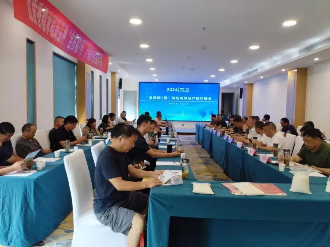 近日,农业科技集团在安徽省庐江县召开水稻品种“金香糯1号”现场观摩暨产销对接会。来自江苏和安徽的种子经销商、种植大户、稻米加工企业负责人以及粮食经销商齐聚一堂,共同探讨“金香糯1号”订单种植产销对接合作事宜。