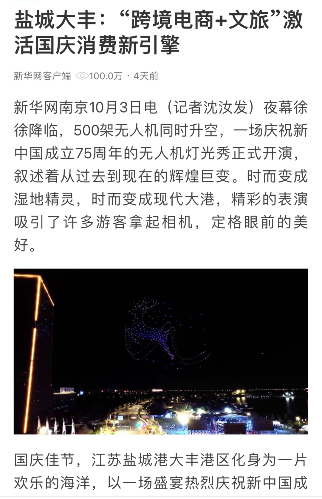 主流媒体也纷纷聚焦盐城港,点赞其独特的旅游模式和丰富的活动安排。央视新闻、新华网、盐城新闻,以及央视网、搜狐网、中工网、光明网、齐鲁晚报网、上观新闻等权威及知名媒体纷纷报道并转发了盐城港在国庆期间的盛况,特别是新华社的报道更是达到了过百万浏览量,凸显了广泛的社会影响力。这些报道一致称赞“跨境电商+文旅”的深度融合模式为推动地方经济转型升级、挖掘消费潜力的新亮点。各大媒体通过图文、视频等多种形式,全方位展示了盐城港的旅游风采,进一步提升了盐城港的知名度和美誉度。